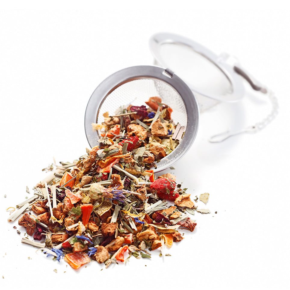 Walderdbeerblätter, Eukalyptusblätter, Rote-Beete-Stücke, Aroma, Kornblumenblüten, Ringelblumenblüten,