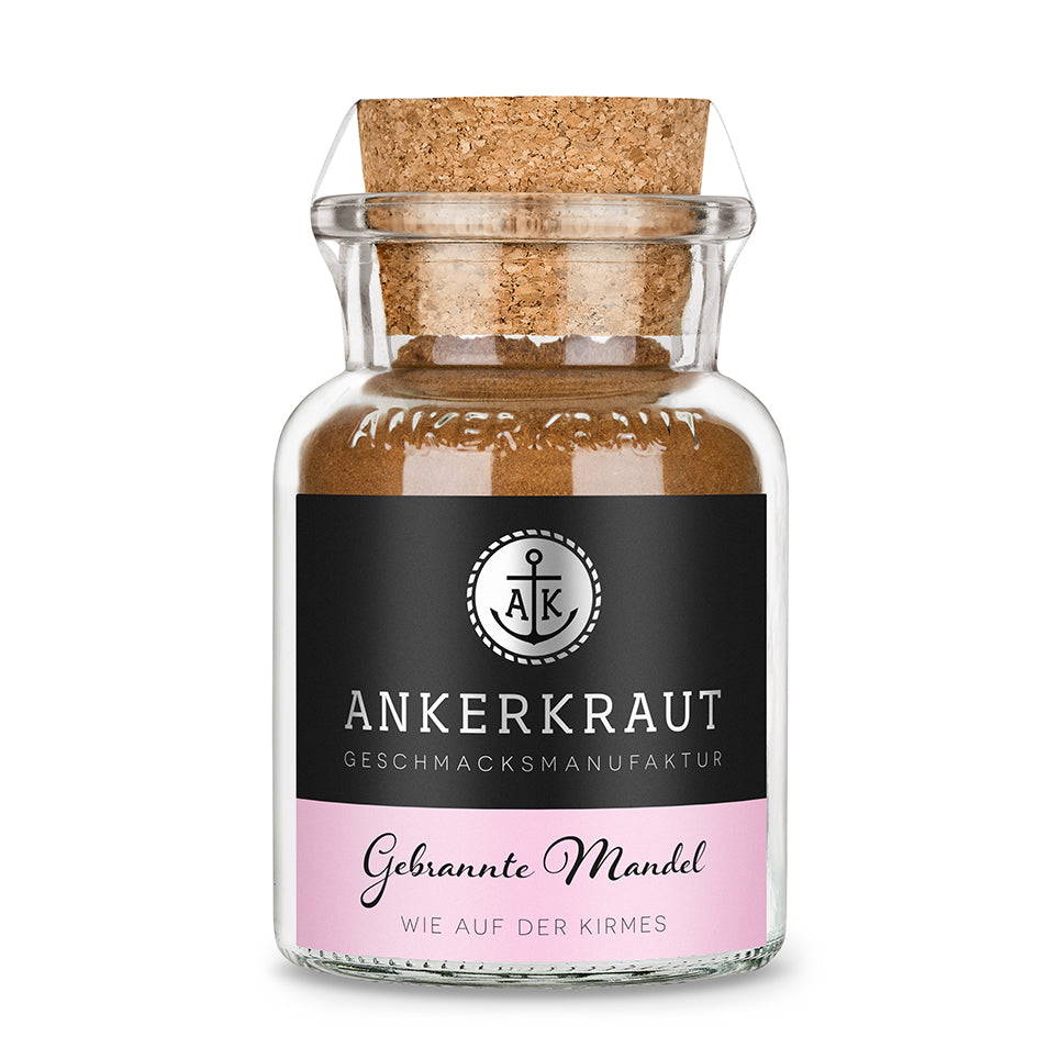 Gebrannte Mandeln gehören zur Vorweihnachtszeit wohl genauso dazu wie Glühwein, Plätzchen und die Adventskerzen. Doch nicht nur in der heimeligsten Zeit des Jahres sind gebrannte Mandeln ein echter Gaumenschmaus. Mit unserer Ankerkraut Gewürzmischung für gebrannte Mandeln kannst du dir dieses Geschmackserlebnis das ganze Jahr über nach Hause holen.